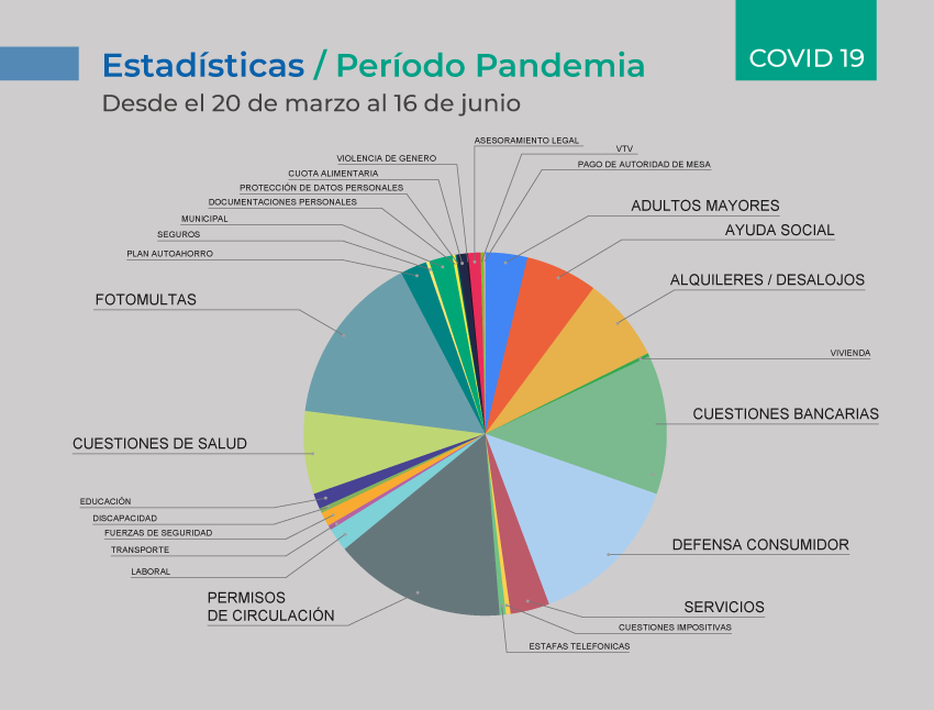 Entre los temas más destacados por los que la ciudadanía consulta o reclama podemos mencionar: permisos de circulación dentro y fuera de la provincia, inconvenientes bancarios, sobreprecios y desabastecimiento, pensiones y ayudas sociales, cuestiones de salud y obras sociales, planes de autoahorro, alquileres, posibles cortes de servicios de luz, agua y gas como así también de Internet y TV por cable, entre muchos otros.